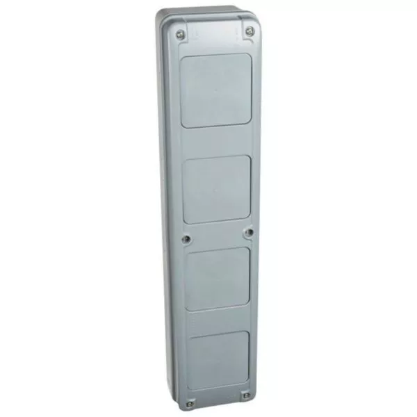 - Gaine multifonction verticale Plexo³ permettant de recevoir les commandes et accessoires : prises 16A et 32A P17 à entraxe unifié, Plexo IP55 encastré, Osmoz, rail modulaire en fond de gaine