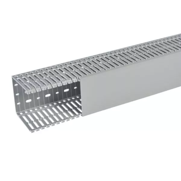 Goulotte de câblage 100x100mm - Fond + couvercle 2m - Découpe latérale - Sécabilité rapide à la main ou à la pince coupante - PVC Gris