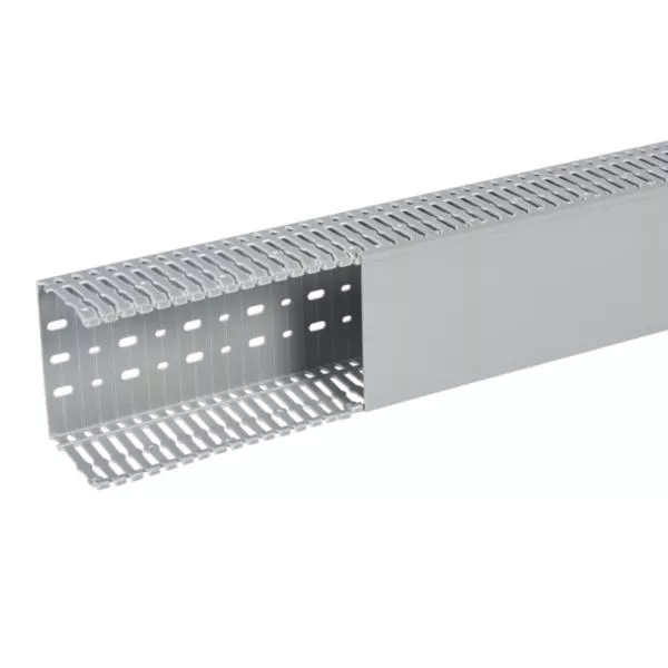 Goulotte de câblage 120x80mm - Fond + couvercle 2m - Découpe latérale - Sécabilité rapide à la main ou à la pince coupante - PVC Gris