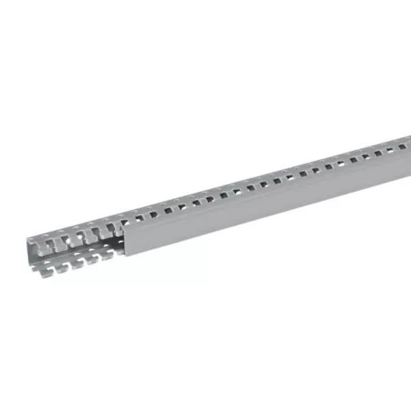 Goulotte de câblage Segma 25mmx25mm - 1 compartiment - Longueur 2m - Livrée avec couvercle - Perforations latérales d'un pas de 6mm à 6,5mm - Sécable à la main avec ses prédécoupes de fond et à la pince coupante - PVC Gris