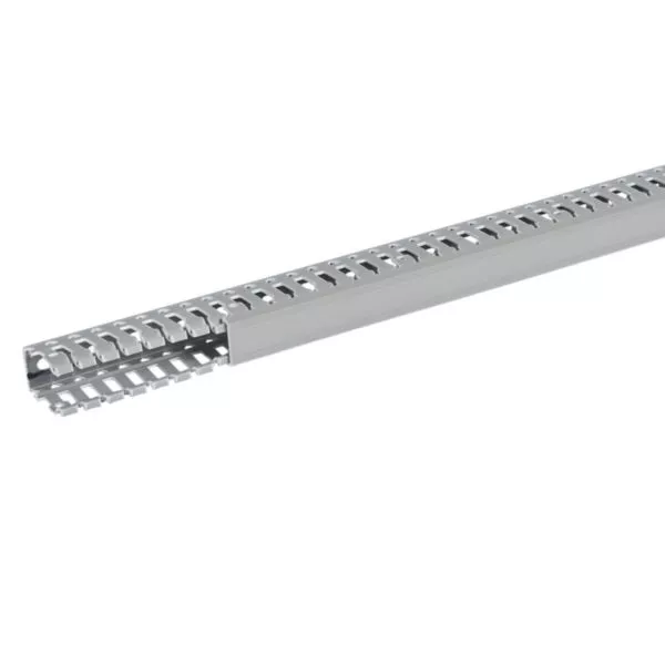 Goulotte de câblage 25x40mm - Fond + couvercle 2m - Découpe latérale - Sécabilité rapide à la main ou à la pince coupante - PVC Gris
