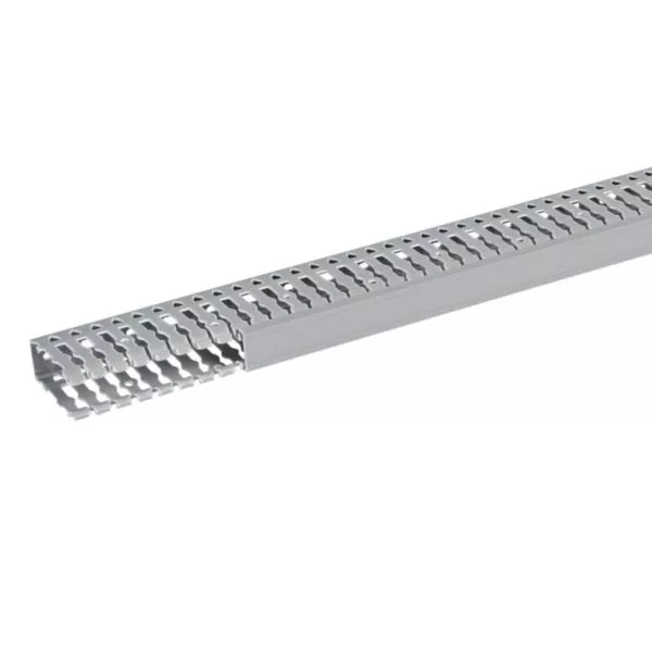Goulotte de câblage 25x60mm - Fond + couvercle 2m - Découpe latérale - Sécabilité rapide à la main ou à la pince coupante - PVC Gris