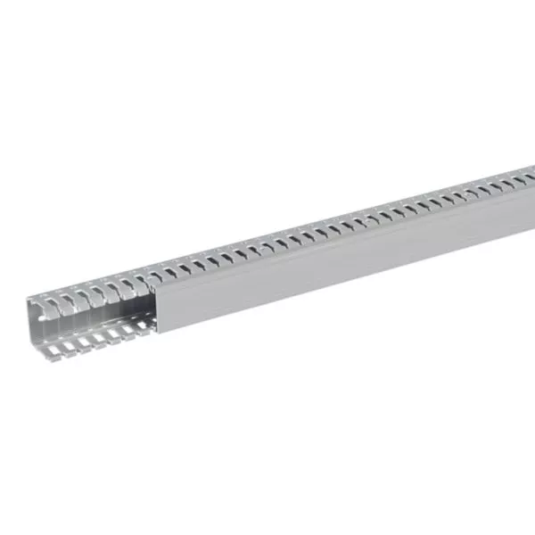 Goulotte de câblage 40x40mm - Fond + couvercle 2m - Découpe latérale - Sécabilité rapide à la main ou à la pince coupante - PVC Gris