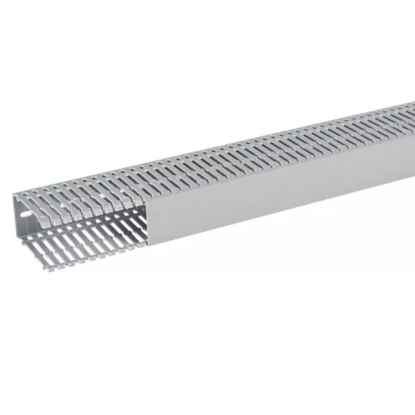 Goulotte de câblage 60x100mm - Fond + couvercle 2m - Découpe latérale - Sécabilité rapide à la main ou à la pince coupante - PVC Gris