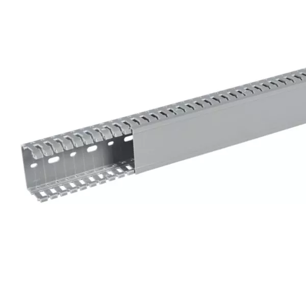 Goulotte de câblage 60x40mm - Fond + couvercle 2m - Découpe latérale - Sécabilité rapide à la main ou à la pince coupante - PVC Gris