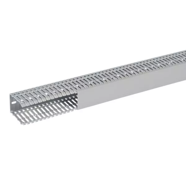 Goulotte de câblage 60x80mm - Fond + couvercle 2m - Découpe latérale - Sécabilité rapide à la main ou à la pince coupante - PVC Gris
