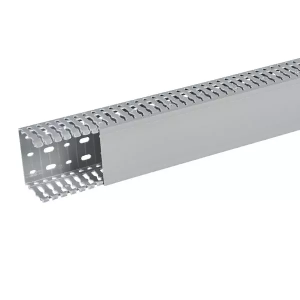 Goulotte de câblage 80x60mm - Fond + couvercle 2m - Découpe latérale - Sécabilité rapide à la main ou à la pince coupante - PVC Gris