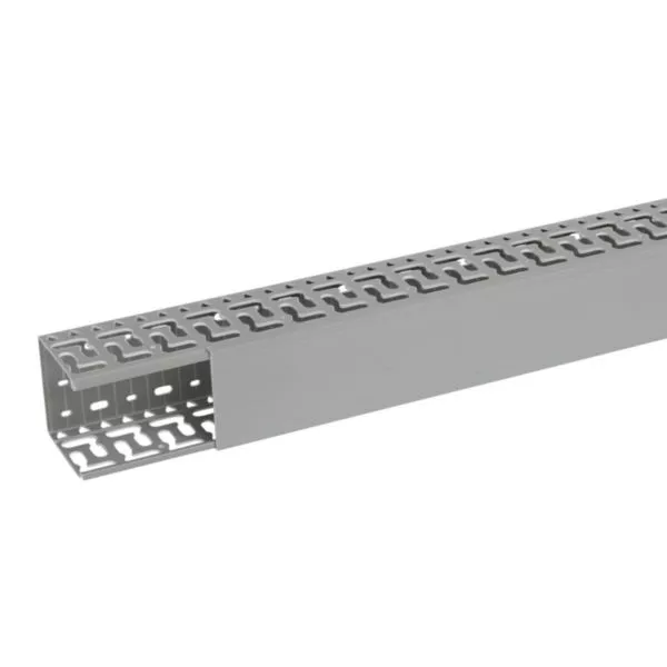 Goulotte de câblage oblongue 80x80mm - Fond + couvercle 2m - Perfo latérales non débouchantes - Goulet d'étranglement - PVC Gris