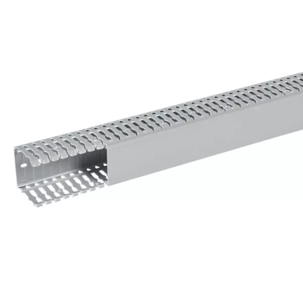 Goulotte de câblage Segma 60mmx60mm - 1 compartiment - Longueur 2m - Livrée avec couvercle - Perforations latérales d'un pas de 6mm à 6,5mm - Sécable à la main avec ses prédécoupes de fond et à la pince coupante - PVC Gris
