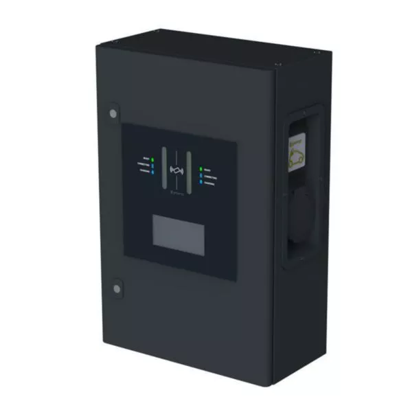 - Conforme à la norme IEC 61851-1, indice de protection IP55 et IK10, boîtier en acier robuste, compteur MID intégré et détection de courant résiduel DC.