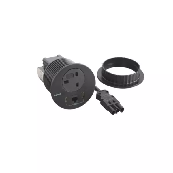 Incara Disq 80 équipé d'1 prise BS, 1 prise chargeur USB A+C 15W, et cordon de 0,5m avec fiche Wieland - noir