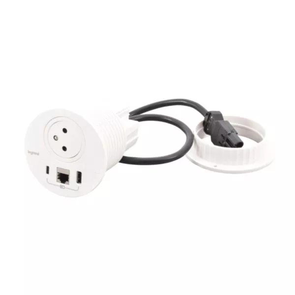 Incara Disq 80 est une solution pensée pour les travailleurs nomades. Incara Disq 80 s'intègre dans un perçage de diamètre 79mm et propose une prise de courant, un chargement USB et un accès réseau dans un encombrement réduit