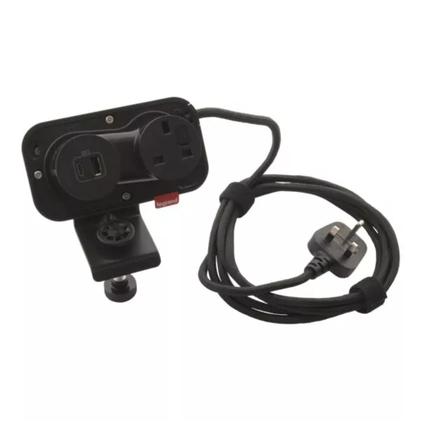 Incara Electr'On équipé de 1 prise BS 1 prise chargeur USB A+C 15W cordon tissé 2,5m avec fiche et accessoire de fixation - noir