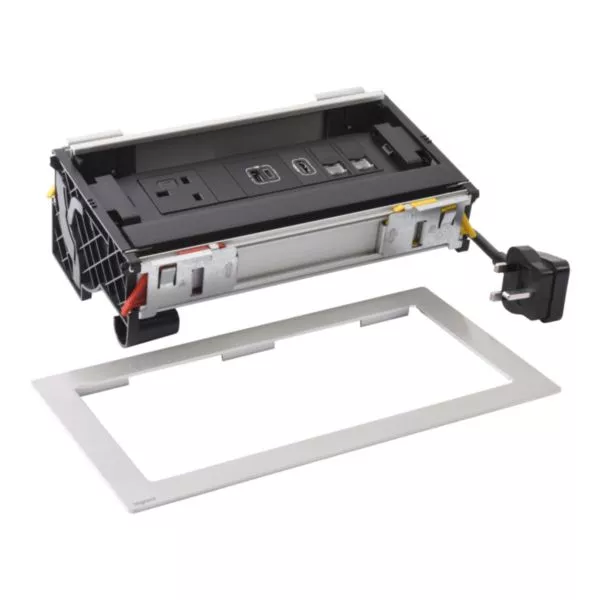Incara Flip'Up équipé de 1 prise BS 1 prise chargeur USB A+C 15W 1 prise HDMI 1 prise RJ45 CAT6 UTP, cordon de 2m avec fiche - métal