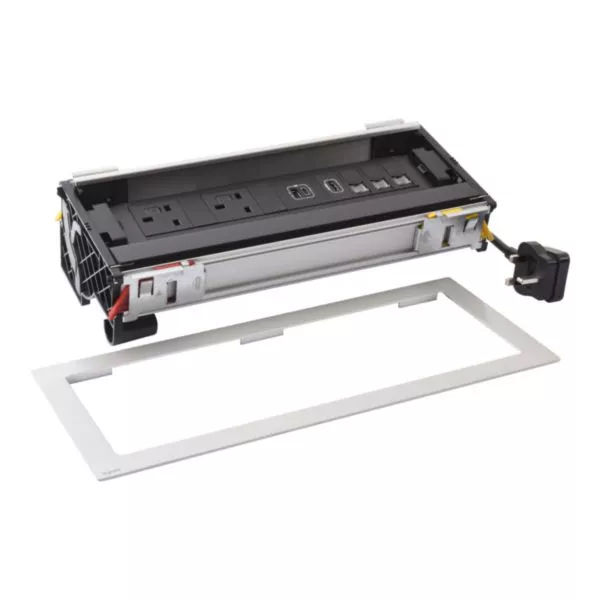 Incara Flip'Up équipé de 2 PC BS, 1 prise chargeur USB A+C 15W, 1 prise HDMI 2.0, 3 RJ45 CAT6 UTP, cordon 2m fiche BS - métal