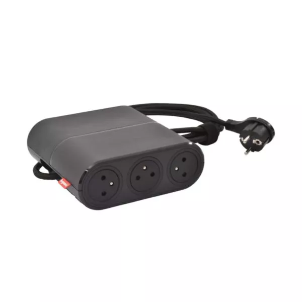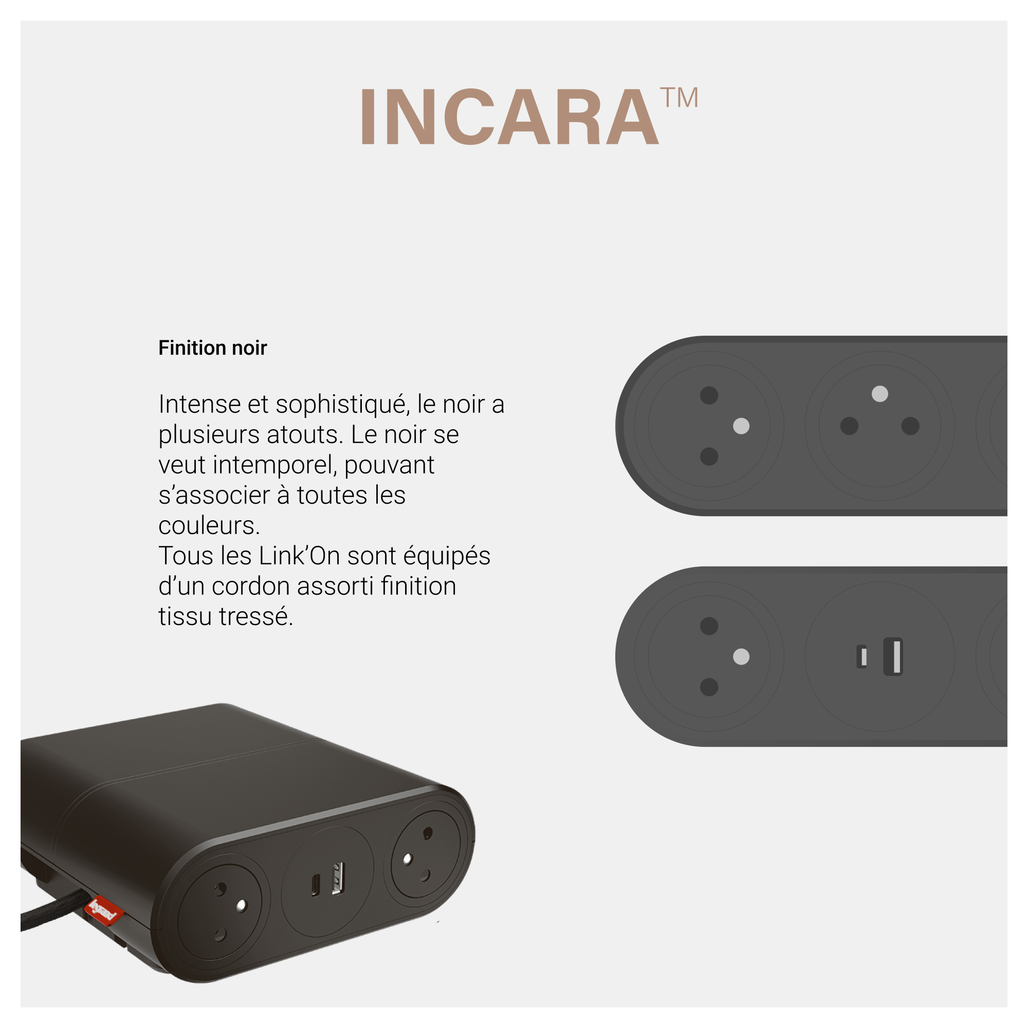 Incara Link'On rallonge mobile multiprises équipée de 6 prises 2P+T finition noir avec cordon 2,5m et fiche 2P+T