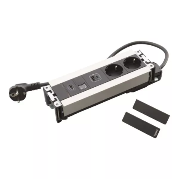 Incara Multilink horizontal 2 PC Schuko, 1 prise chargeur USB A+C 15W, 1 prise RJ45 CAT6 UTP 1 HMDI et cordon de 2m avec fiche - métal