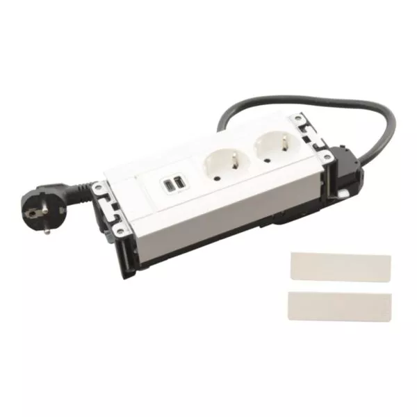 Incara Multilink horizontal 2 prises Schuko, 1 prise chargeur USB A+C 15W et 1 cordon de 2m avec fiche - blanc
