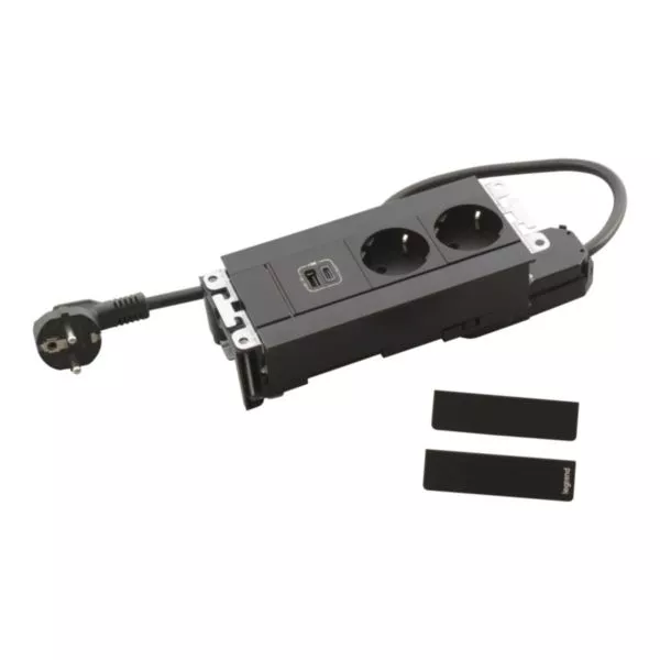 Incara Multilink horizontal 2 prises Schuko, 1 prise chargeur USB A+C 15W et 1 cordon de 2m avec fiche - noir