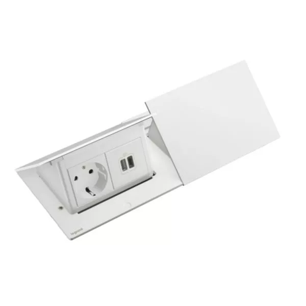Incara Pop Up equipé de 2 prises Schuko, 2 prises chargeur USB A+C 15W et un cordon de 2m avec fiche - blanc