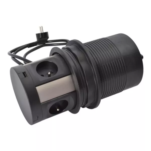 Incara Tower 120 Ø121mm à encastrer dans mobilier avec 4 prises 2P+T , 4 chargeurs USB et cordon