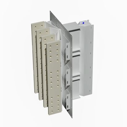 - Tôle en acier galvanisé conforme à la norme UNI EN10327, peinte avec des résines RAL7035 résistantes aux agents chimiques