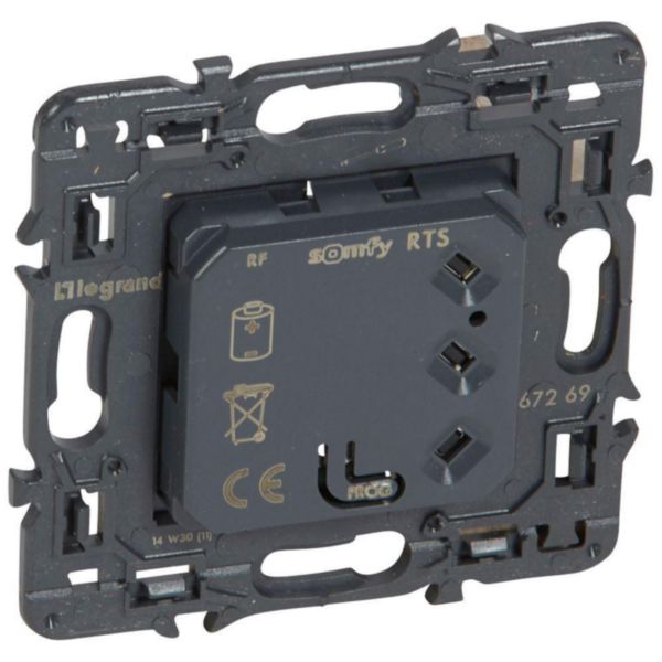 - A associer à un enjoliveur et une plaque Céliane, support livré monté sur le produit - Emet par radio les ordres de montée, descente et arrêt au moteur RTS