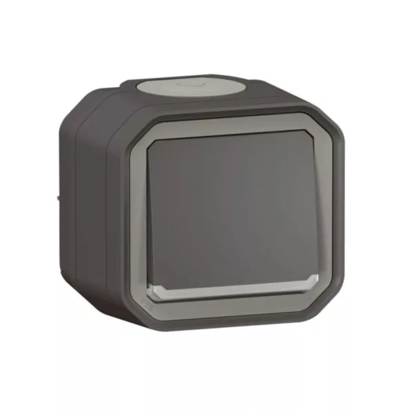 Interrupteur ou va-et-vient lumineux avec voyant étanche Plexo 10AX 250V~ IP55 IK08 complet fixation saillie - anthracite
