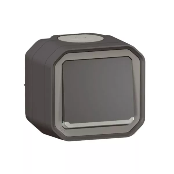Interrupteur ou va-et-vient témoin avec voyant étanche Plexo 10AX 250V~ IP55 IK08 complet fixation saillie - anthracite