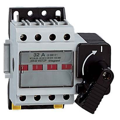 Vistop 32A, interrupteur-sectionneur de sécurité assurant la coupure en charge, avec sectionnement pleinement apparent et action positive des contacts