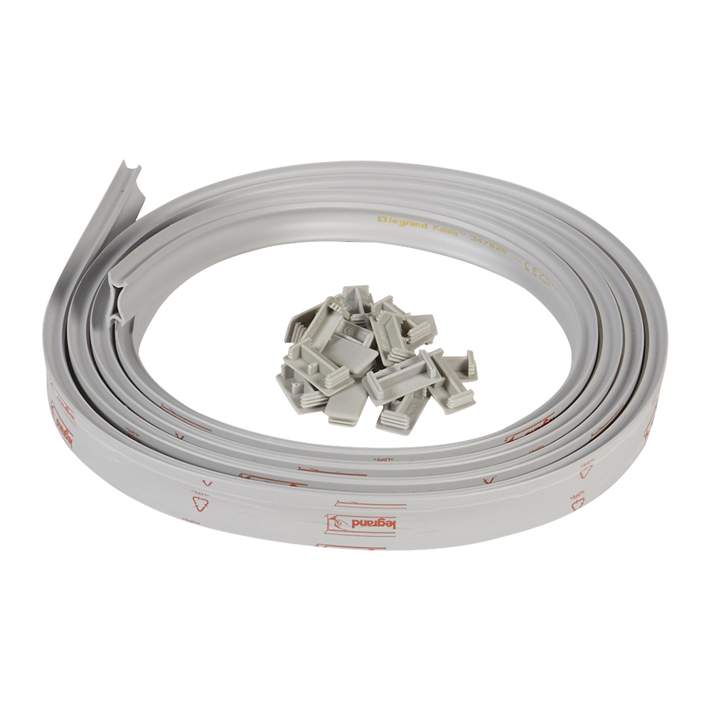 Joint de finition en plastique pour consoles Kaleïs pour chemins de câbles fils Cablofil CF54 ou tôle perforée P31 - finition PVC gris