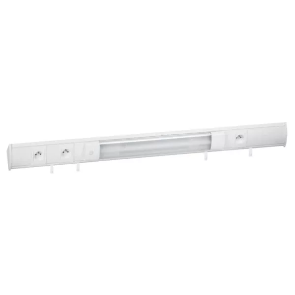 Kit bandeau multifonction avec profilé 1,20m , couvercle 0,60m , module d'éclairage 13W avec interrupteur , 2 embouts , 3 prises 2P+T , 5 crochets et 1 interrupteur blanc Artic