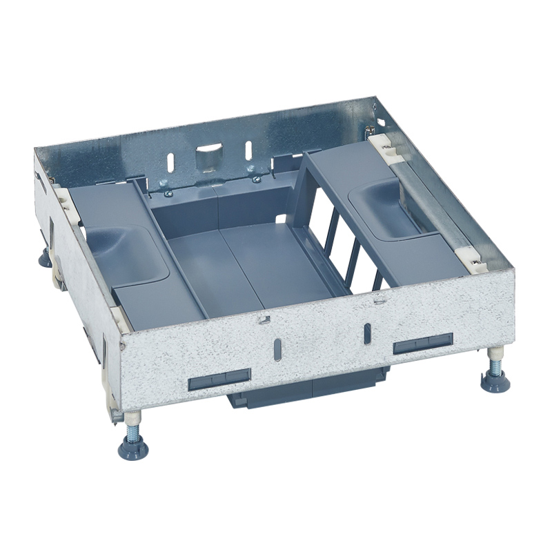 - Une gamme universelle disponible en trois tailles, adaptée à tous types de sol (planchers techniques, chapes béton) et évolutive car munie de supports d'appareillages communs (une boîte de sol standard peut devenir affleurante sans décâbler les prises).