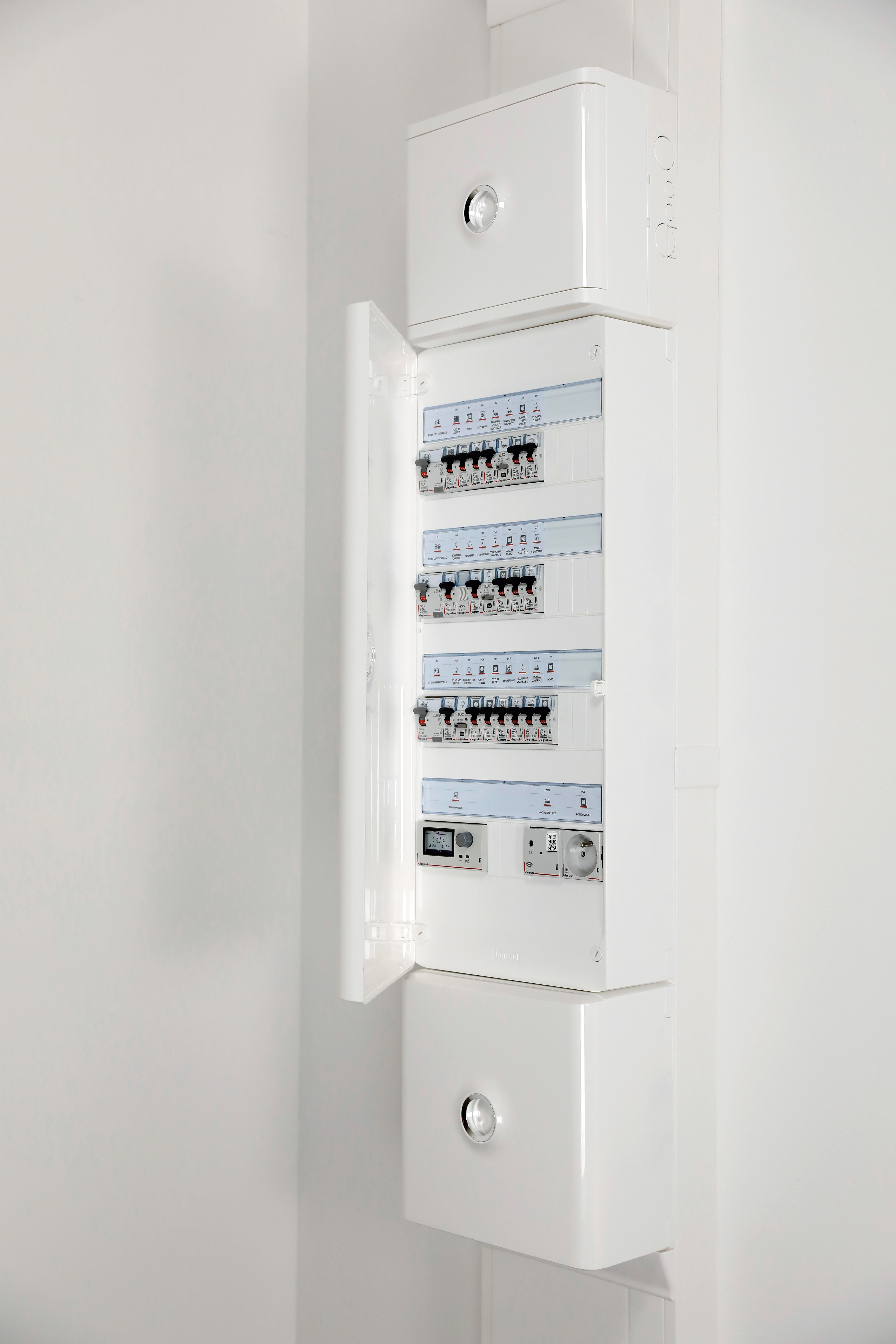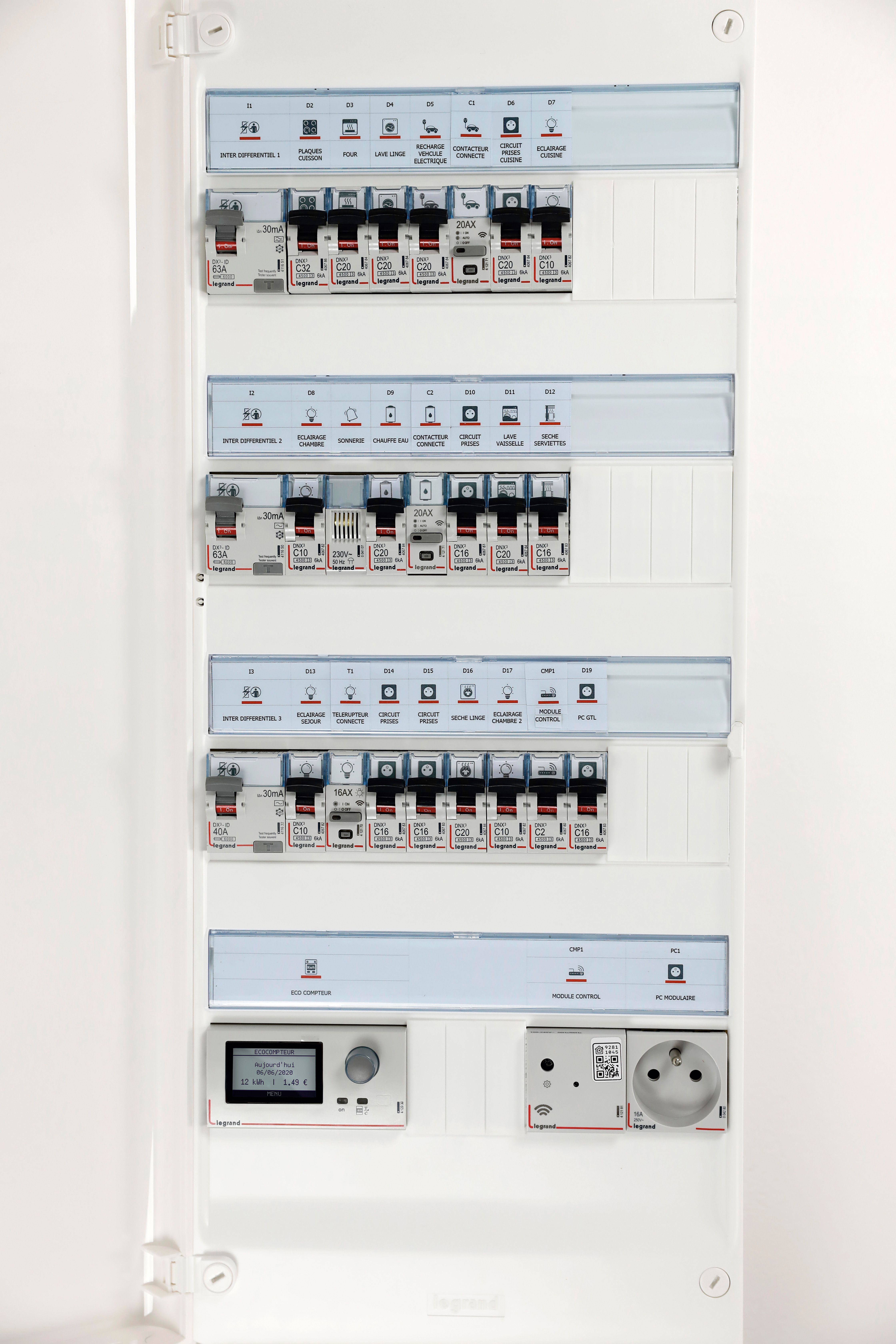Drivia with Netatmo propose des produits modulaires connectés à installer directement dans le tableau électrique, compatibles avec l'application Home + Control et les principaux assistants vocaux. Ces fonctions permettent de contrôler la production et la consommation d'énergie et de réduire la facture grâce aux fonctionnalités de gestion et contrôle de l'énergie. La mise en oeuvre est simple avec un câblage classique et intuitif avec l'appairage des autres fonctions with Netatmo