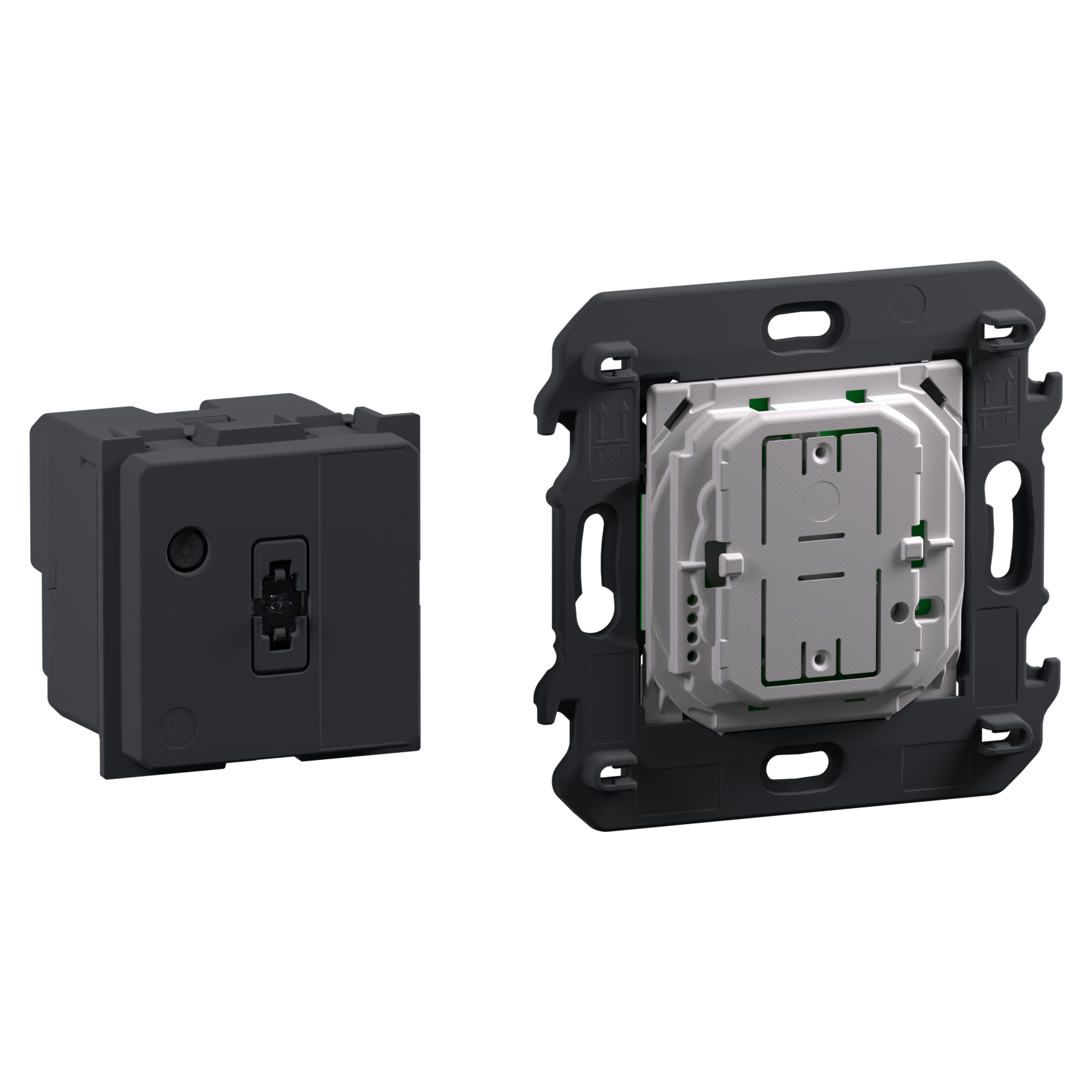 - L'installation du pack Control se fait facilement en lieu et place d'une prise standard existante dans une boîte 1 poste de profondeur 40mm avec ou sans griffes