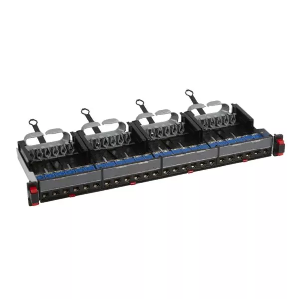 - Equipé de guide-câbles à l’arrière pour maintien du câble lors de la maintenance - Equipé de 4 cassettes de 6 connecteurs LCS3 RJ45 catégorie 6 pré-montés - Repérage T568A et T568B avec codes couleurs - Livré avec étiquettes de couleur numérotées