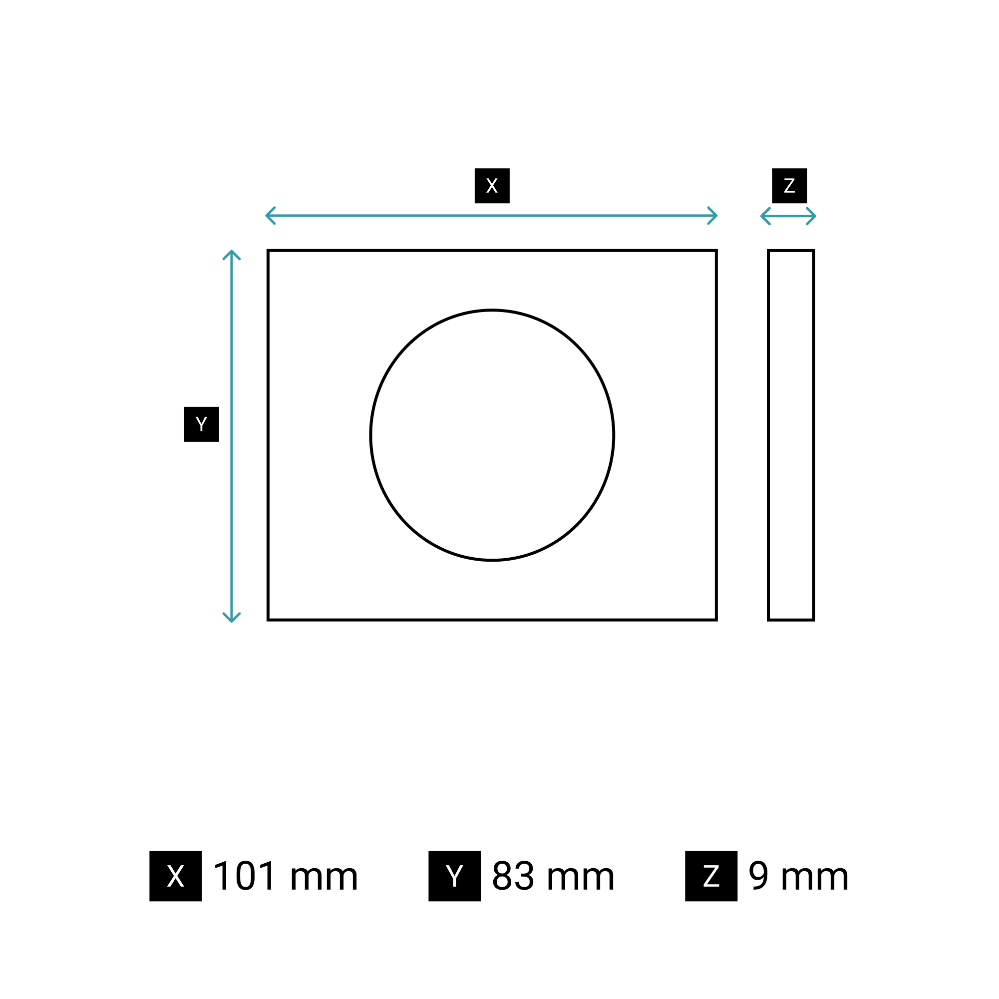 - Cette plaque est composée de 2 parties : la finition en frêne certifié PEFC 100%, garantissant que le bois utilisé provient de forêts gérées durablement, et une sous-plaque noire comportant 100% de plastique recyclé. Cela représente au moins 50% de matière recyclée sur le poids total de la plaque