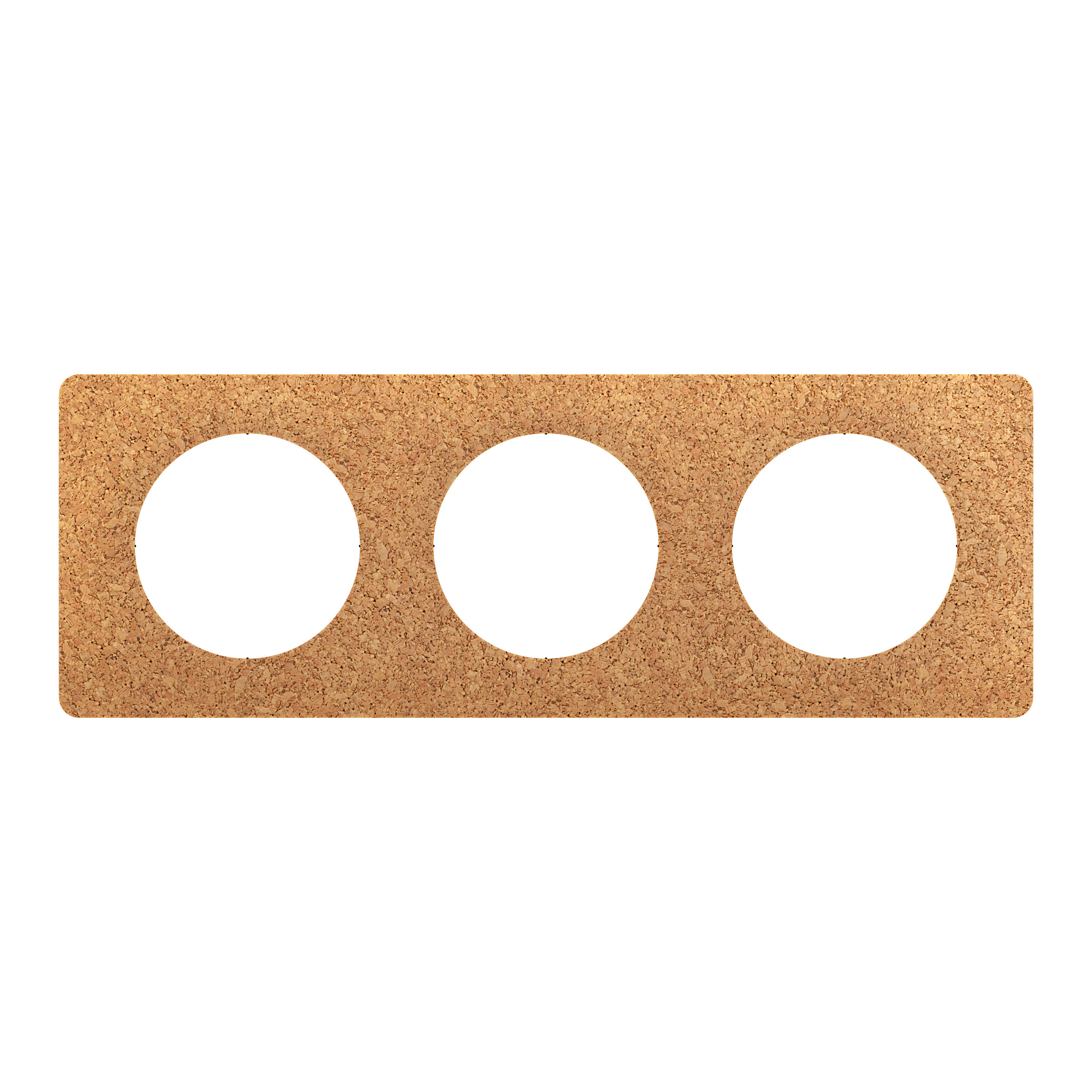 - Cette plaque est composée de 2 parties : la finition en liège certifié PEFC 100%, garantissant que le bois utilisé provient de forêts gérées durablement et une sous-plaque noire comportant 100% de plastique recyclé. Cela représente au moins 77% de matière recyclée sur le poids total de la plaque