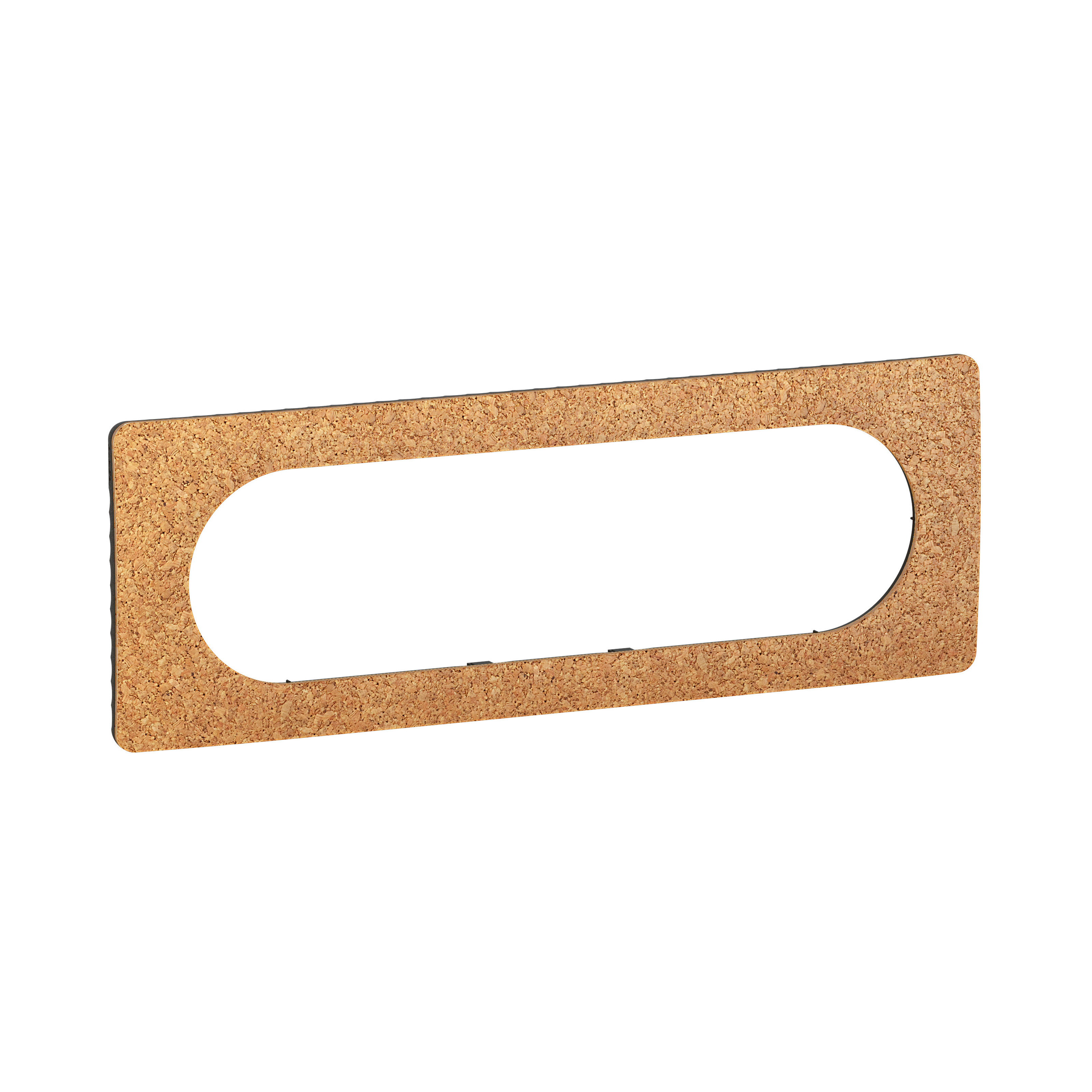 - Cette plaque est composée de 2 parties : la finition en liège certifié PEFC 100%, garantissant que le bois utilisé provient de forêts gérées durablement et une sous-plaque noire comportant 100% de plastique recyclé. Cela représente au moins 77% de matière recyclée sur le poids total de la plaque