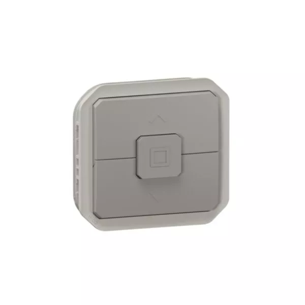 Poussoir étanche pour commande par automatisme de moteur de volets roulants Plexo IP55 IK06 avec enjoliveur gris