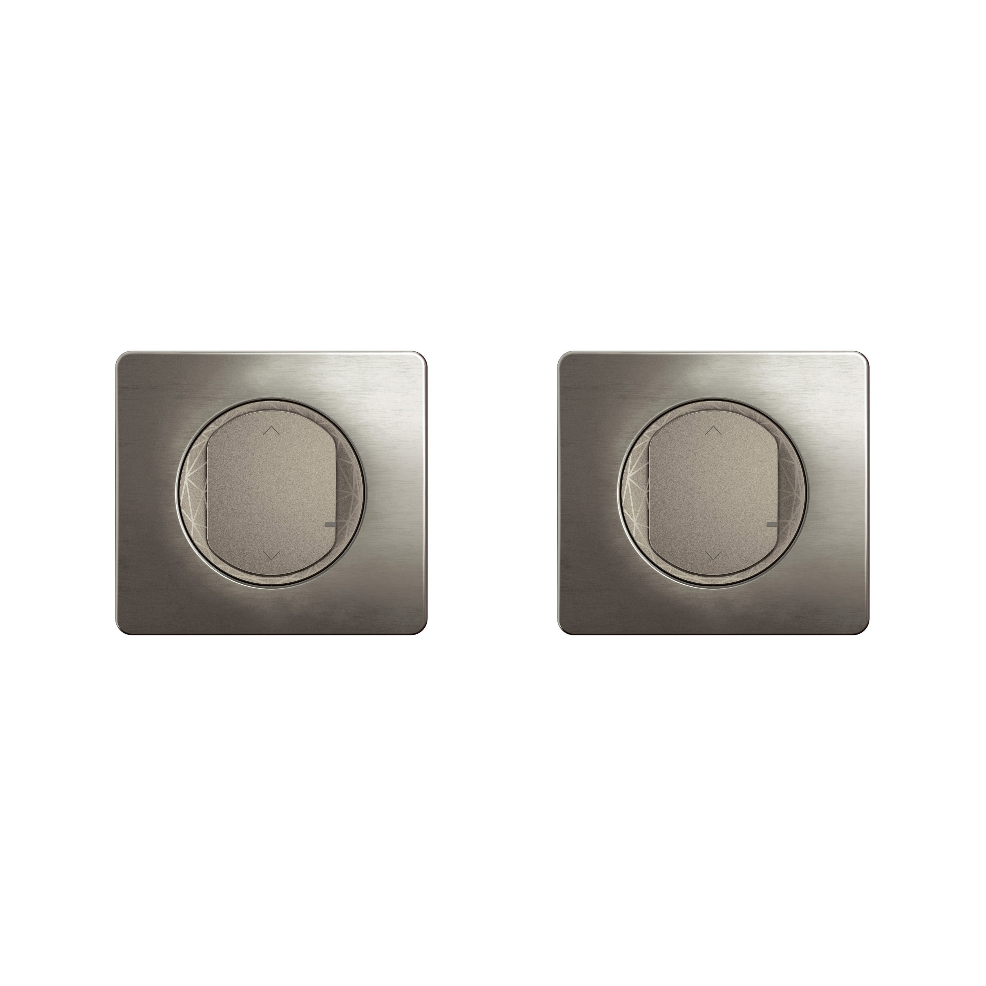 - 1 interrupteur de volet roulant 230 V~ fonctions montée/descente/stop, compatible avec les volets à butée mécanique et électronique, non compatible avec les volets roulants à commande radio, livré avec coque de protection de chantier - finition Titanium