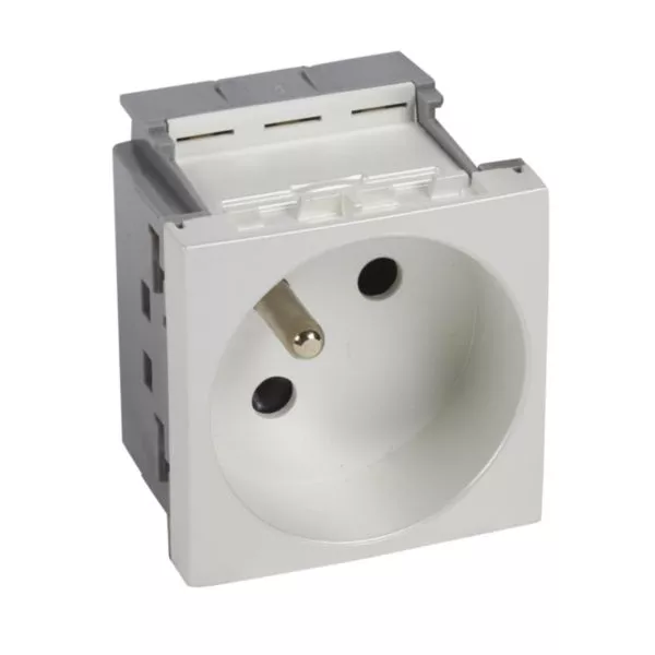 Prise 2P+T juxtaposée Logix-2 modules-16A-250V-Création de bloc multiprise-Brochage vertical-Equipée Normaclips-Compatible avec supports d'installation Logix : boîte de sol, bloc bureau, pop'up, goulotte, colonne et colonnette-Alumnic