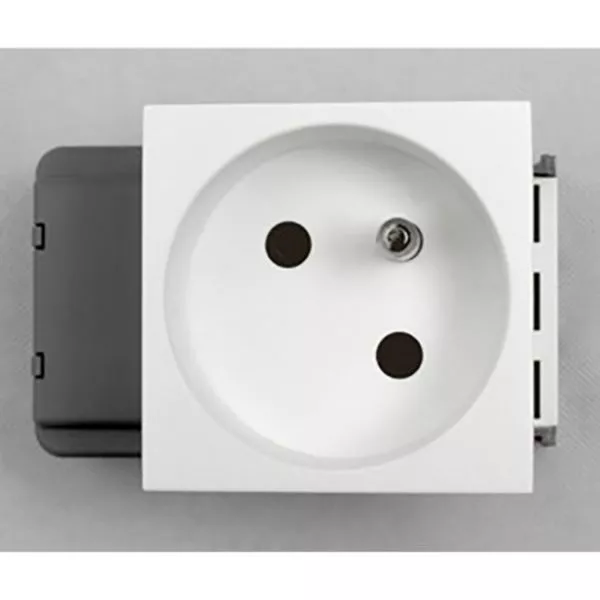 Prise 2P+T Logix-2 modules-16A-250V-Inclinée 45°-Alimentation bloc multiprise-Bornes auto-Equipée Normaclips-Compatible avec les supports d'installation Logix : boîte de sol, bloc bureau, pop'up, goulotte, colonne et colonnette-Blanc Artic
