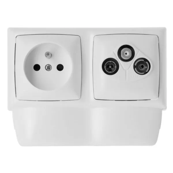 Prise 2P+T + prise TV-FM-SAT saillie pour moulures Keva hauteur 20mm cadre double équipé de mécanisme Appareillage Saillie de Legrand ASL
