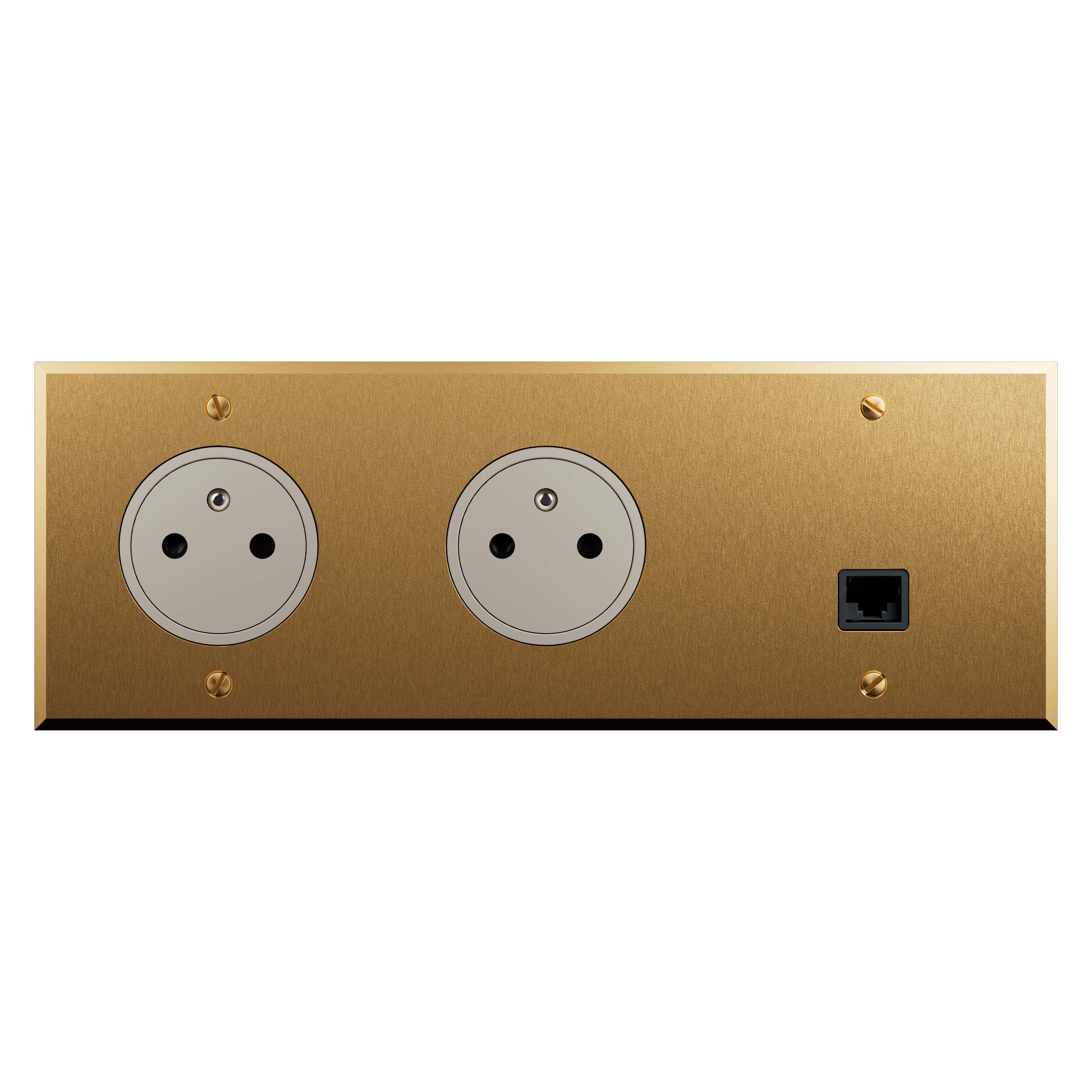 Prise 2x2 P+T+ RJ45 6A STP 3 postes - Mémoire Or Brossé - Art d'Arnould