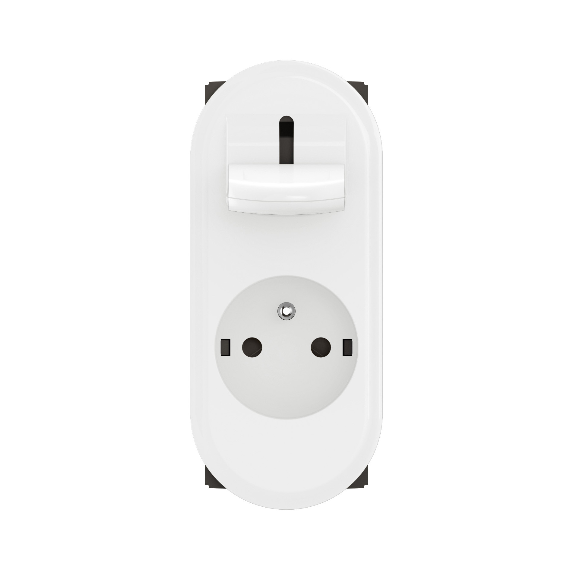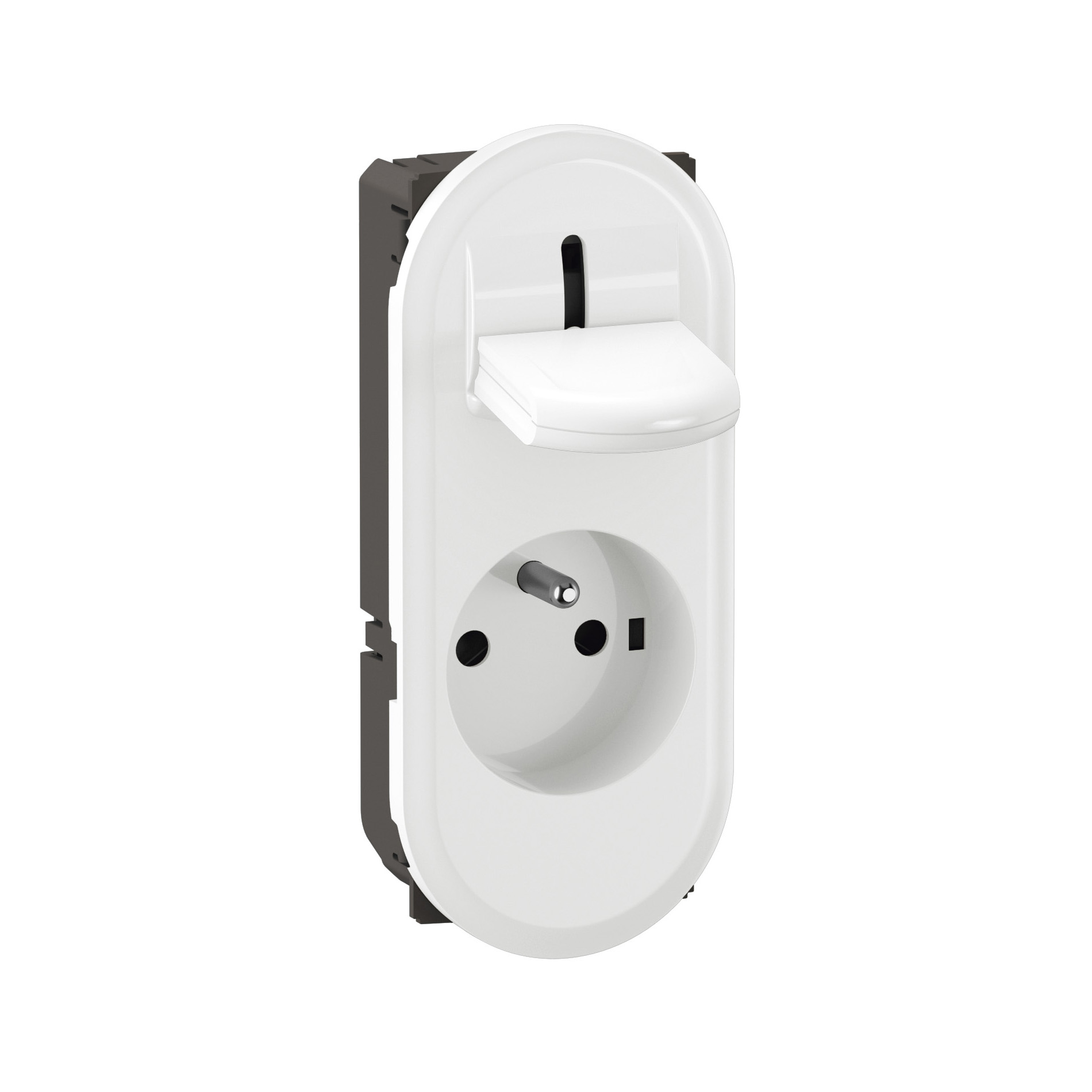 Prise de courant spéciale accessibilité Céliane livrée avec enjoliveur, à compléter d'un support universel Batibox et à combiner avec une plaque de finition Céliane 4/5 modules