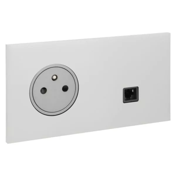 Double prise, 2P+T affleurante et RJ45 en 2 postes qui s’adapte parfaitement à l’esprit et l’usage du lieu et offre aux architectes et décorateurs le moyen de façonner, dessiner, et modeler les espaces