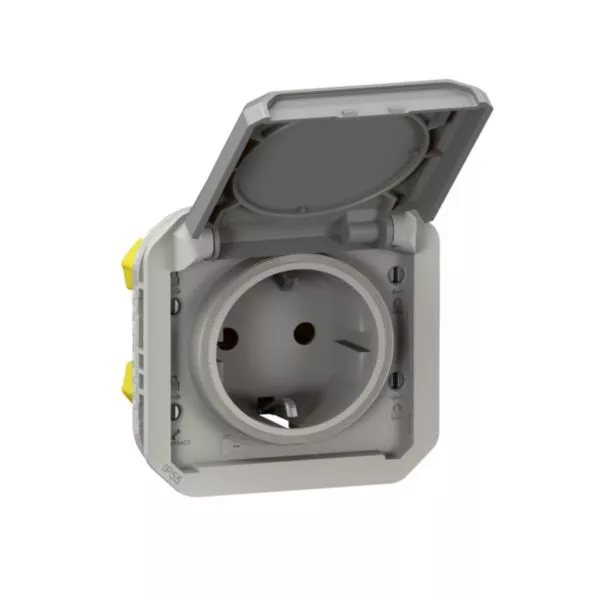 Plexo, une prise de courant à composer, à équiper d'un boîtier saillie ou d'un support plaque Plexo