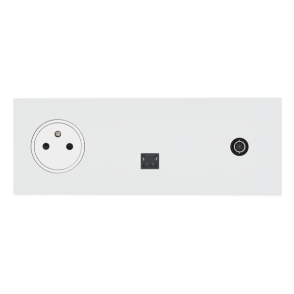 Prise de courant 2P+T, Prise RJ45 catégorie 6 FTP et Prise télévision Epure finition Blanc Satin Art d'Arnould