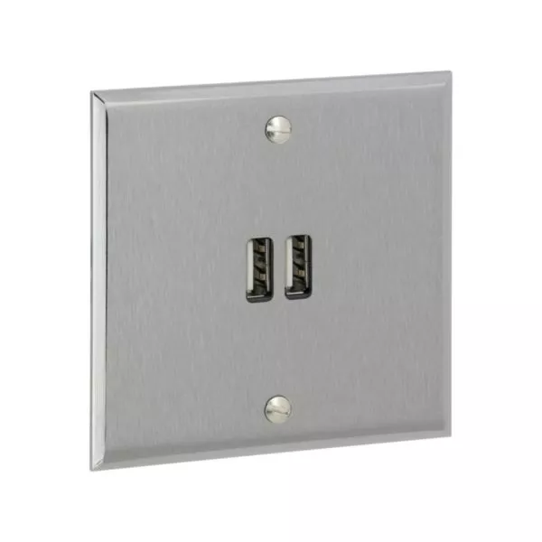 Prise Prise Chargeur USB Type A+A 15W Mémoire finition Acier Brossé Art d'Arnould